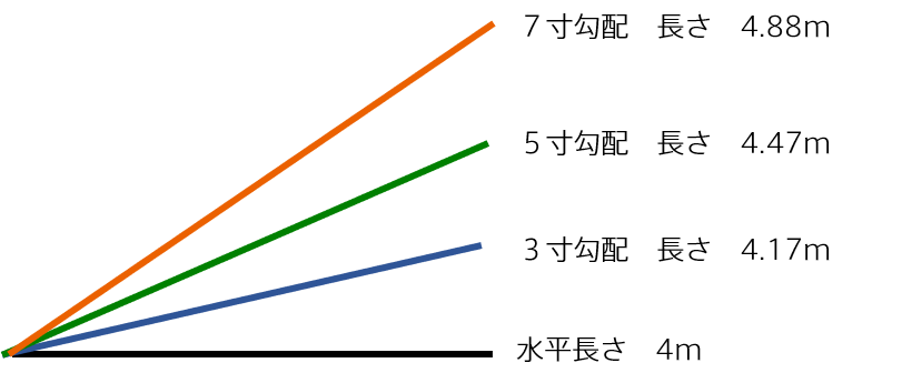 よく、何社か見積もりをとったときに、屋根の面積が違う場合は、この勾配の計算であることが多いですね。