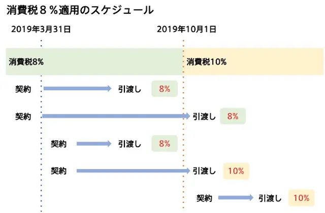 これから外壁塗装やリフォームを行おうと考えている方、 増税分2%を後悔しないために、増税前のリフォームのポイントをご紹介します! ポイント1、重要なのは「お引き渡し日」 ポイント2、特別ルール「経過措置」、3/31までに契約なら、増税後の引き渡しでも消費税は8% ポイント3、4月以降の契約でも9/30までに引き渡せば消費税8% ポイント4、駆け込みはNGな2つの理由 ポイント1、重要なのは「お引き渡し日」 消費税は原則、商品を受け取るときに課税されます。 リフォームの場合だと、工事が完了してご依頼者様にお引き渡しをさせていただく日が、課税される日になります。 つまり、8%のうちに工事を行いたい場合は増税前の9月30日までに引き渡しがなければなりません。 ポイント2、特別ルール「経過措置」、3/31までに契約なら、引き渡しが10月以降になっても消費税は8% しかし、外壁塗装やリフォームのような請負工事の場合は、工事期間が長くかかるということもあって、「経過措置」という特別なルールが適応になる場合があります。 この経過措置とは、請負契約を「2019年3月31日」までに締結すれば、引渡しが2019年10月以降になっても税率8%が適用される」というものです。 確実に消費税8%が適用されるリフォームを行うには、経過措置適用期間内の2019年3月31日までにご契約されるのがお勧めです。 ポイント3、4月以降の契約でも9/30までに引き渡せば消費税8% ポイント1でもお伝えしている通り、お引き渡し日が課税される日になります。 つまり、9/30までに引き渡しができるのであれば、消費税8%での施工が可能です。しかし、増税前に工事を行いたいと思う方は多いでしょう。 そうなった場合、業者が対応しきれず9/30までに引き渡しができないとリスクもありますので早めの依頼が肝心です。