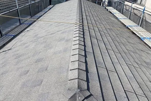 屋根の塗装では下塗りに水性シリコンベストサーフェーサーを、中塗りと上塗りでは同じく日本ペイントの水性シリコンベストを使用し、美しく仕上がりました!