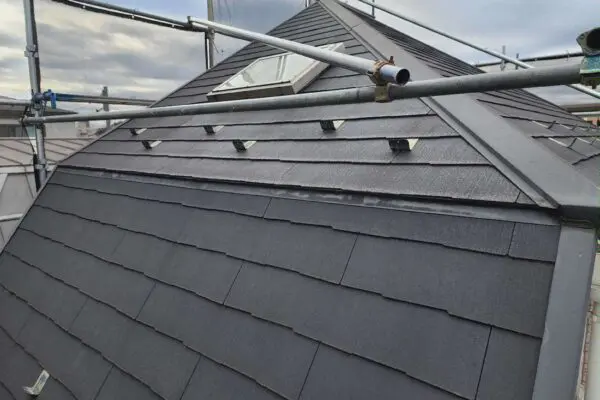 スレートは塗装すると隙間を塗膜で塞いでしまうため、縁切りが重要となってきます。縁切りはタスペーサーを取り付けて行いました。
