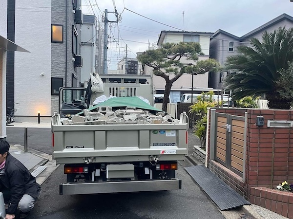 ブロックは重量があるため、周囲への影響に配慮しながら一つひとつ丁寧に解体・搬出を行いました。