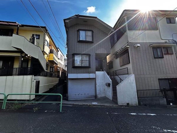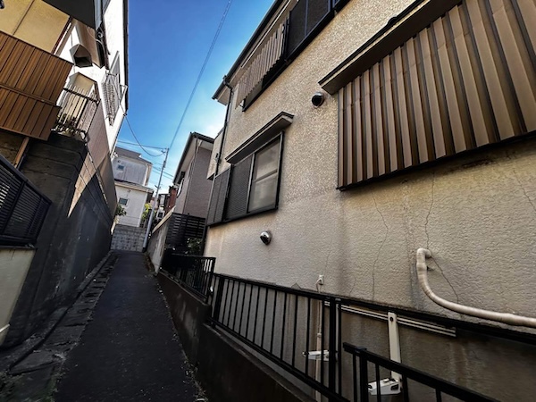 M様邸は住宅が密集するエリアに位置しており、建物の側面には細い通路がありました。