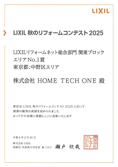 LIXIL秋のリフォームコンテスト2025中野区エリアNo.1