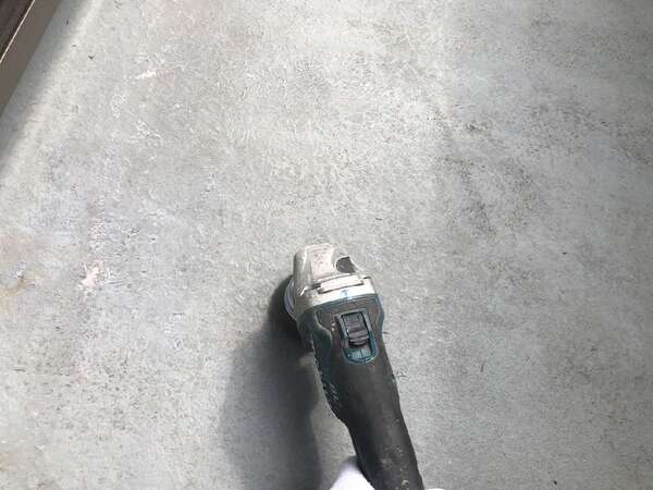 防水材がしっかり密着するよう、事前に機械を使って下地のケレン(研磨)作業を行いました。