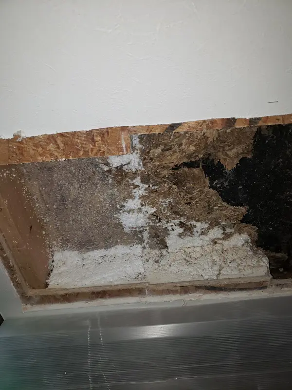 古くなったコロニアル屋根が水を吸収して湿潤状態になり、水を通すようになっていました。
