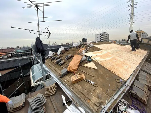 東京都中野区にて瓦屋根の葺き直し工事の現場です。