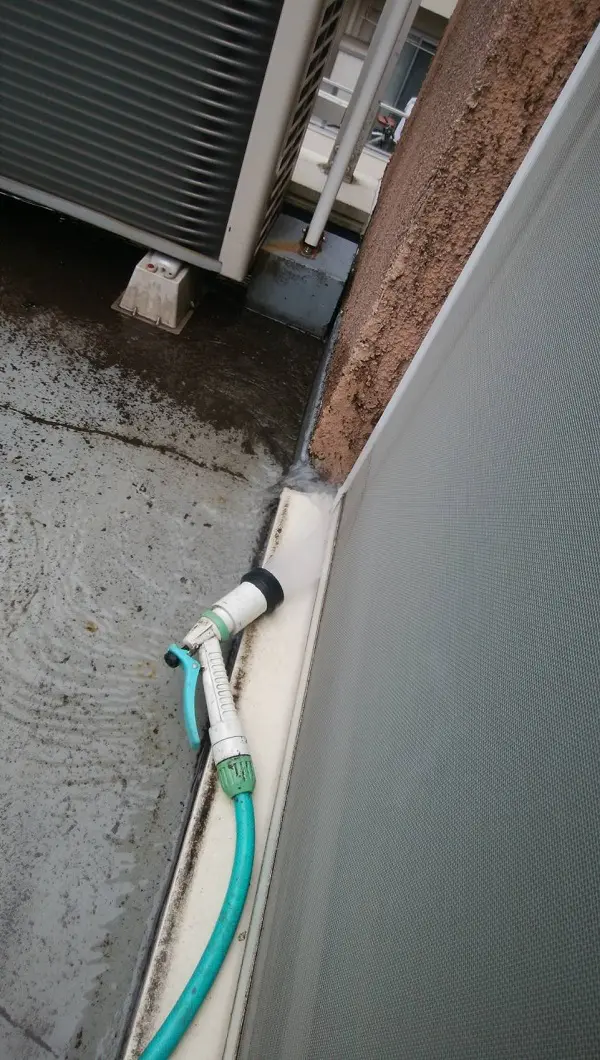 散水試験を行った結果、水はベランダのサッシと防水の取り合い部分から侵入している事がわかりました。