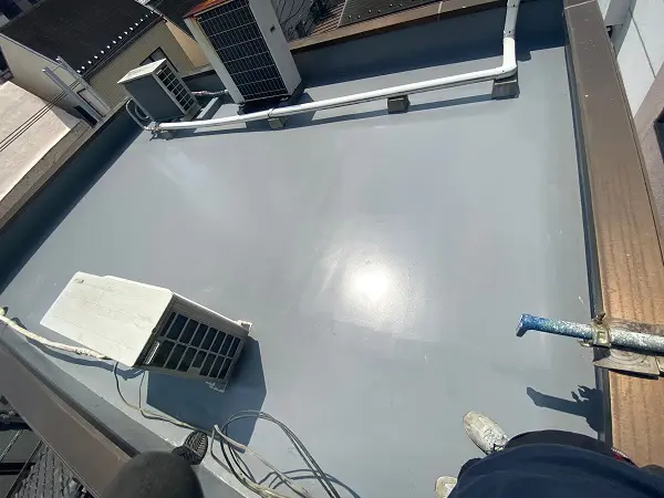 ウレタン塗膜防水材は2回重ね塗りし、規定の塗膜厚を形成しました。