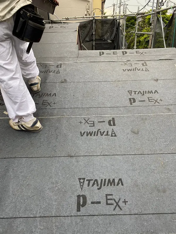 使用したルーフィングは田島ルーフィングさんのPカラーEX+(プラス)です。