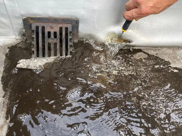 まずは下地や排水口に埃や土、鳥のフンなどの不純物が溜まっていたので、
