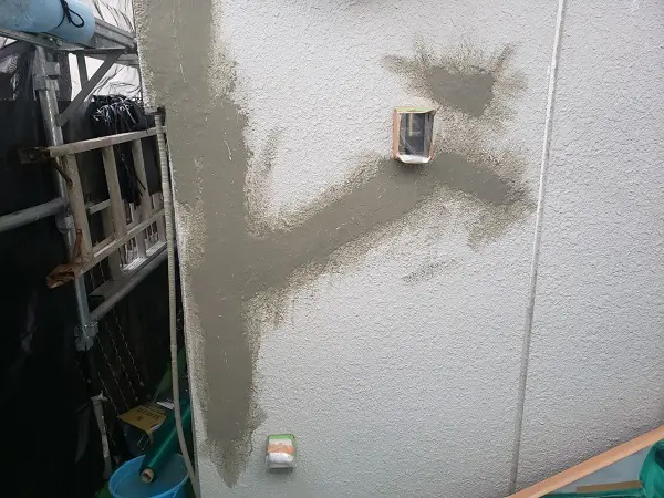 また、モルタル外壁にも大きなひび割れがあり、左官で補修をしました。