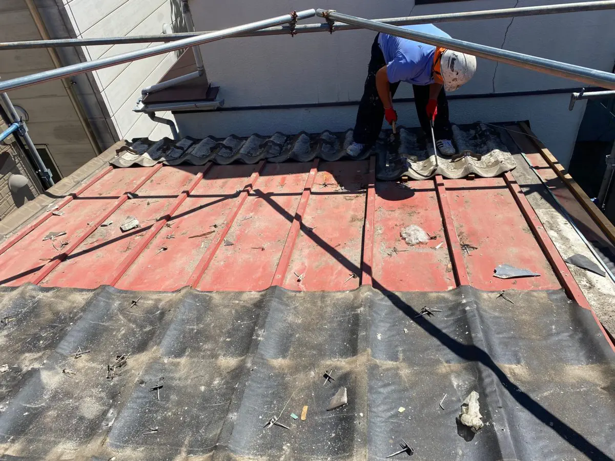 しっかりと頑丈な足場を設置したら、次は古い屋根材の撤去です。