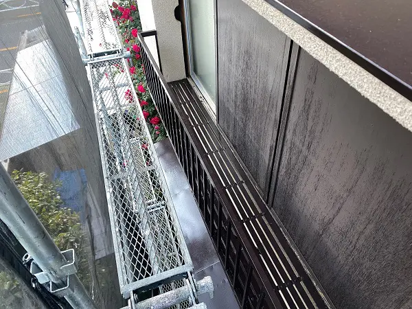 今回は、ベランダと換気フードの塗装の様子についてお伝えします。