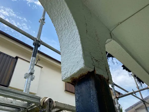 一番下の写真では、錆びが起きないモルタルに錆びが移っていました。