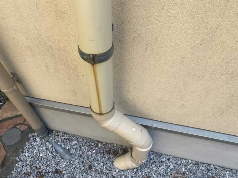 配管や雨樋は金具で固定してあります。金具は経年劣化で錆びると脆くなり、朽ちてしまうことがあります。また、金具の錆は上の写真のように錆が流れて汚してしまいます。